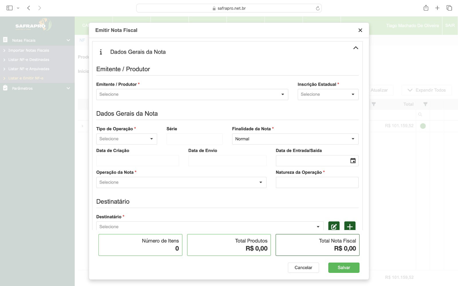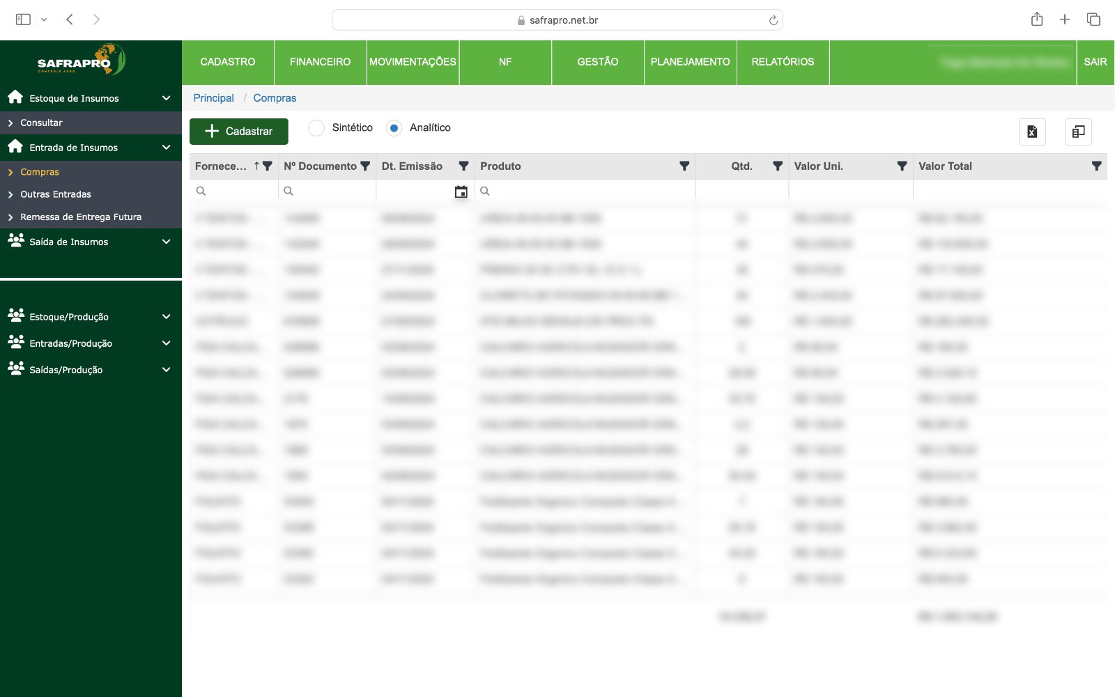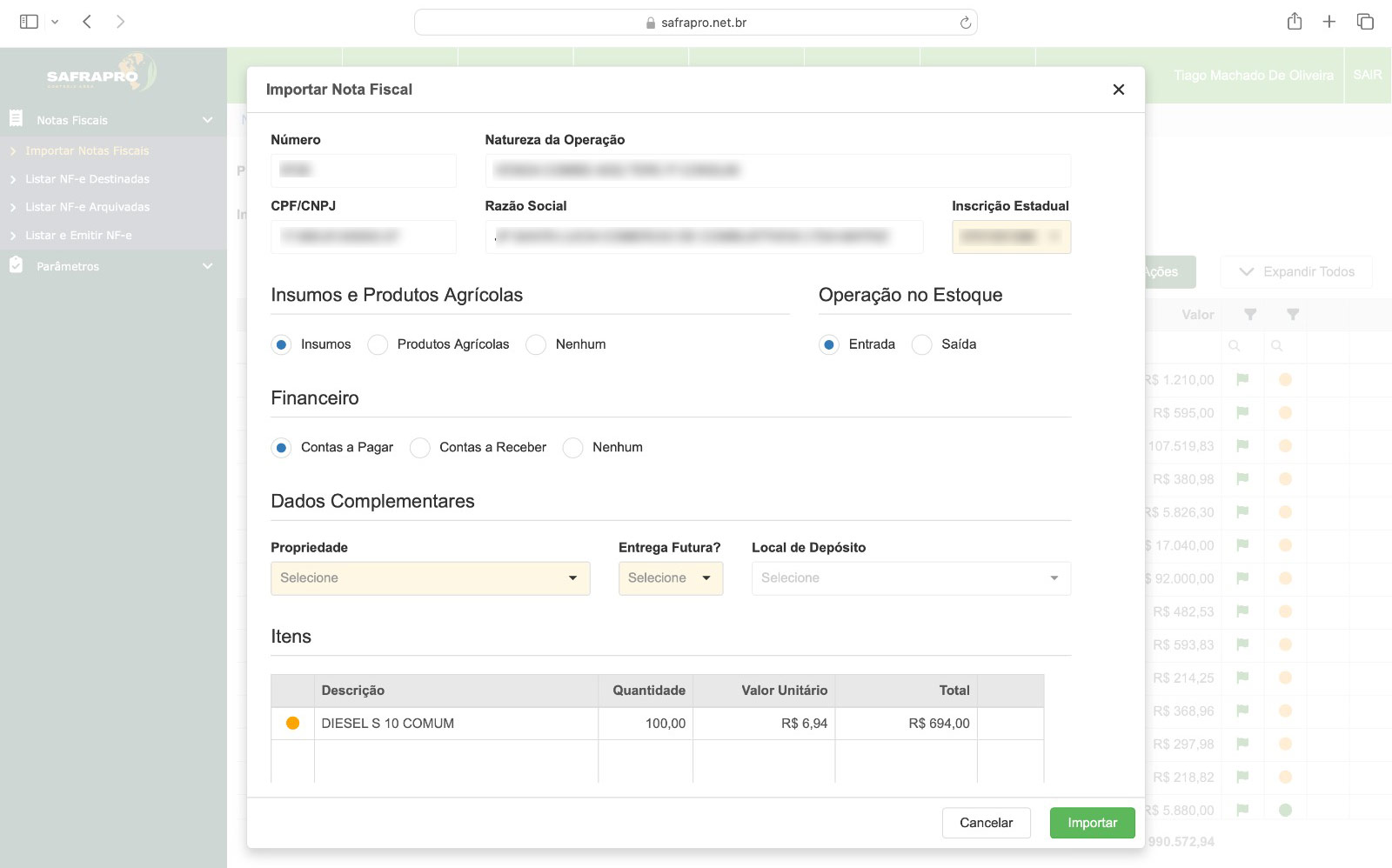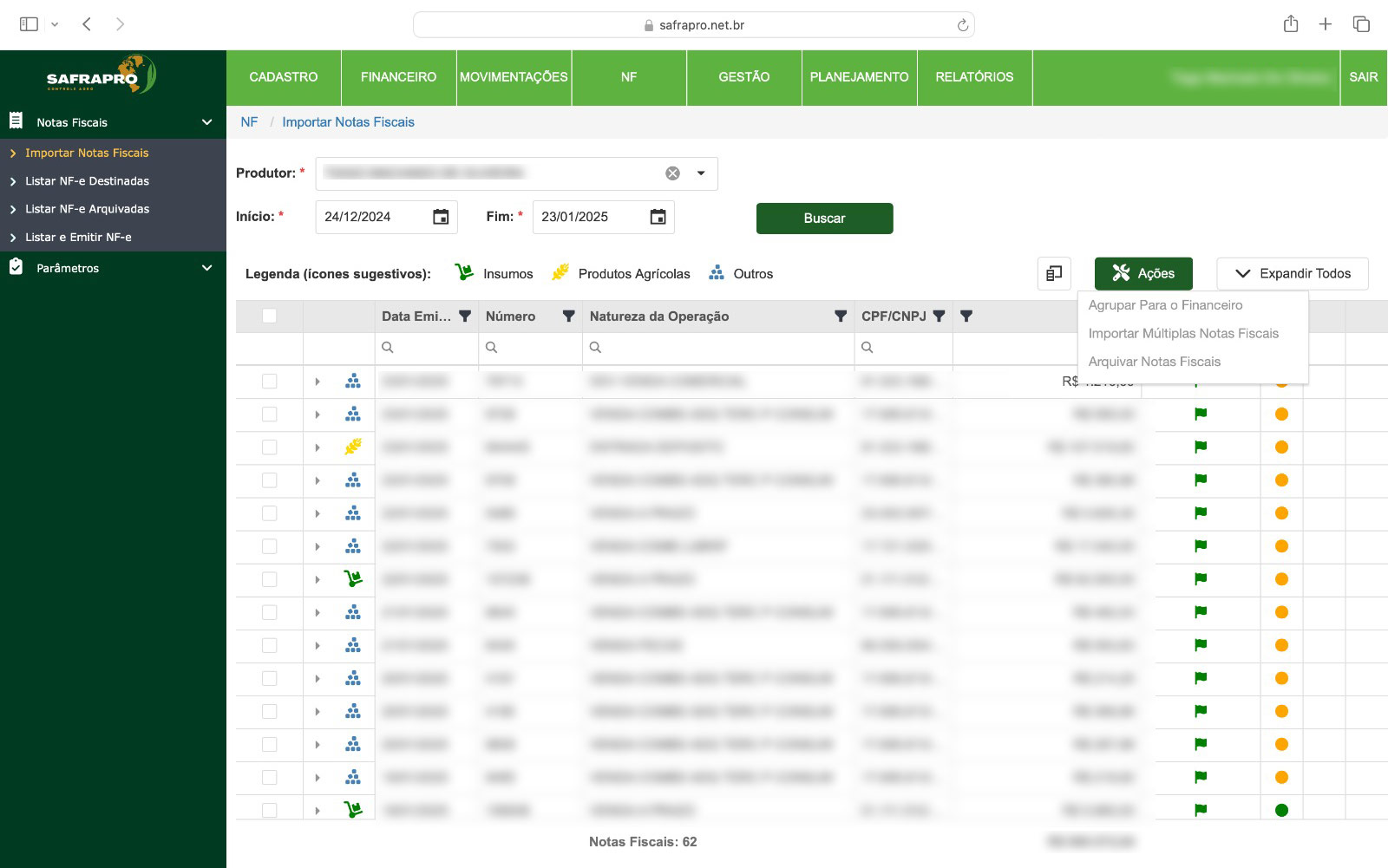 Buscador, importador e emissão de notas eletrônicas para produtores rurais, integrado com cadastro de clientes e fornecedores, estoque, contas a pagar e a receber.